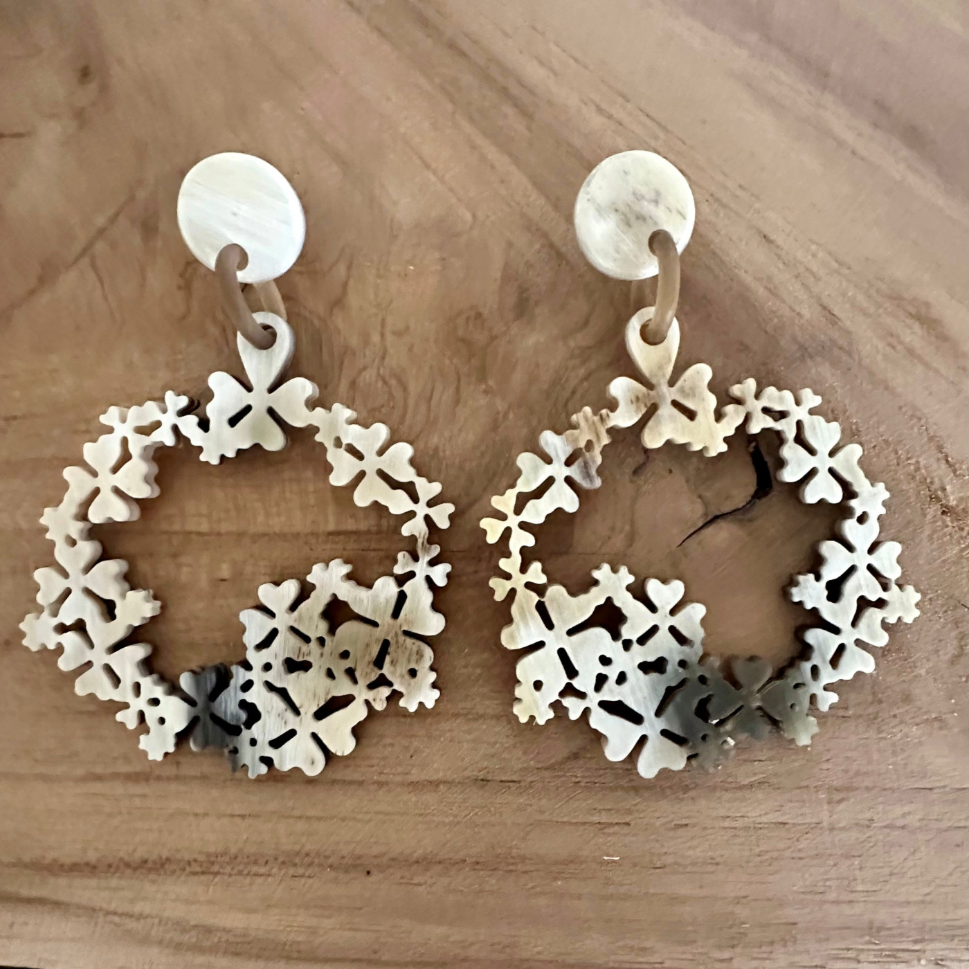 Prachtig bewerkte, stijlvolle, lasergesneden buffelhoorn oorbellen.