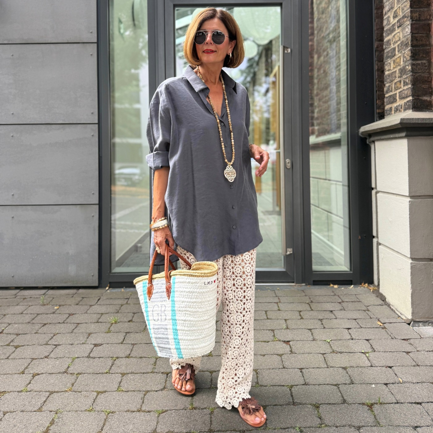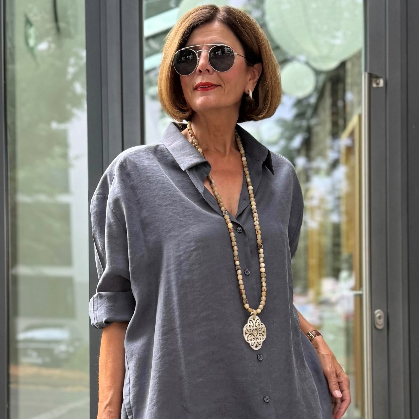 Deze eyecatcher van buffelhoorn, is uitgevoerd in matte, ronde kraaltjes met een Ø van 1.0 cm.