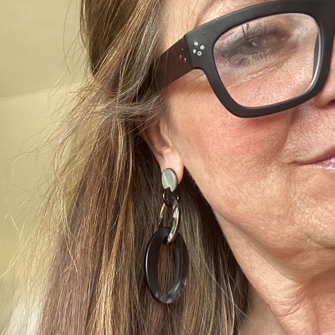 Stoere, dubbele ovale schakeloorbellen van buffelhoorn, handgemaakt.
