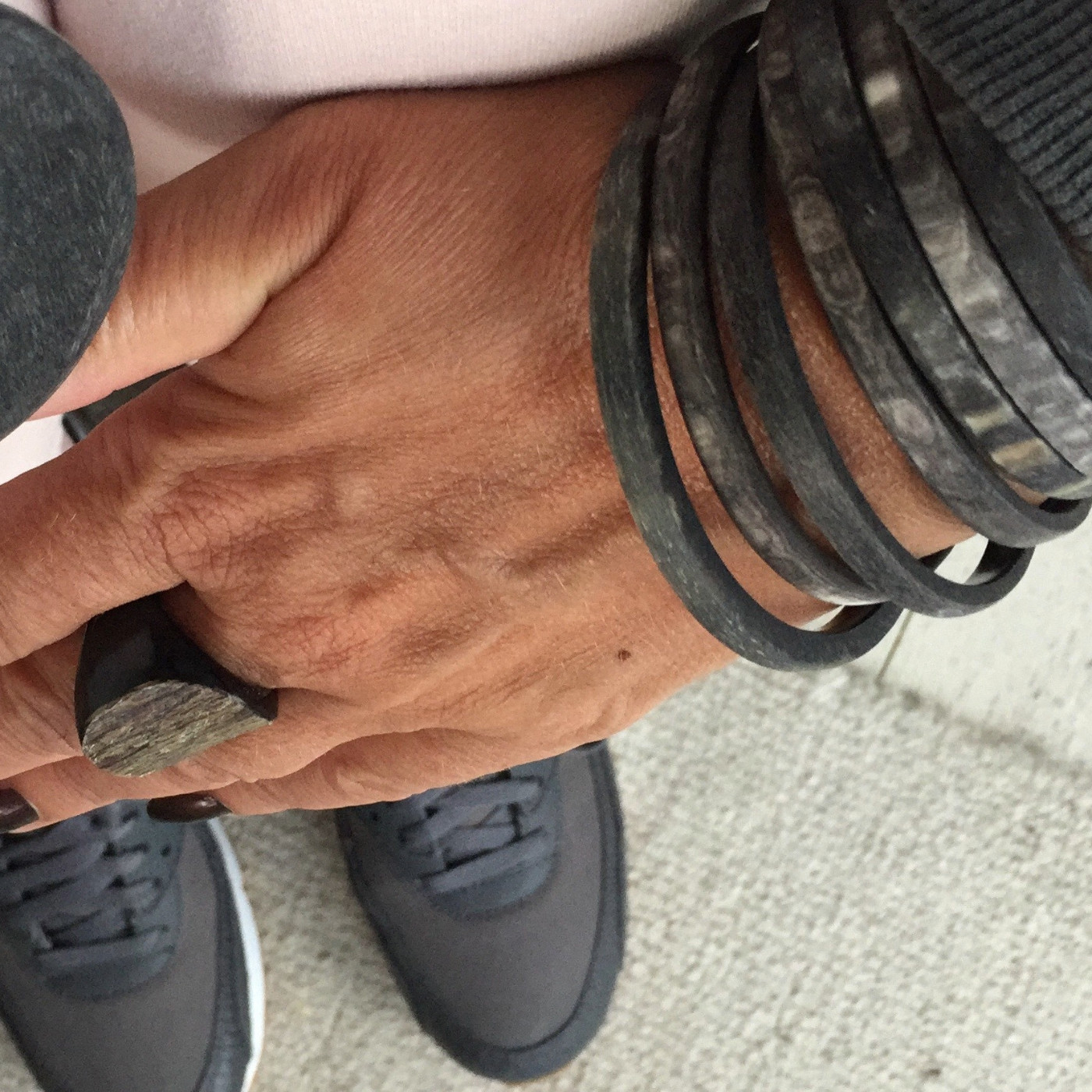Stoere handgemaakte buffelhoorn armbanden, 7 stuks. Shades of grey...