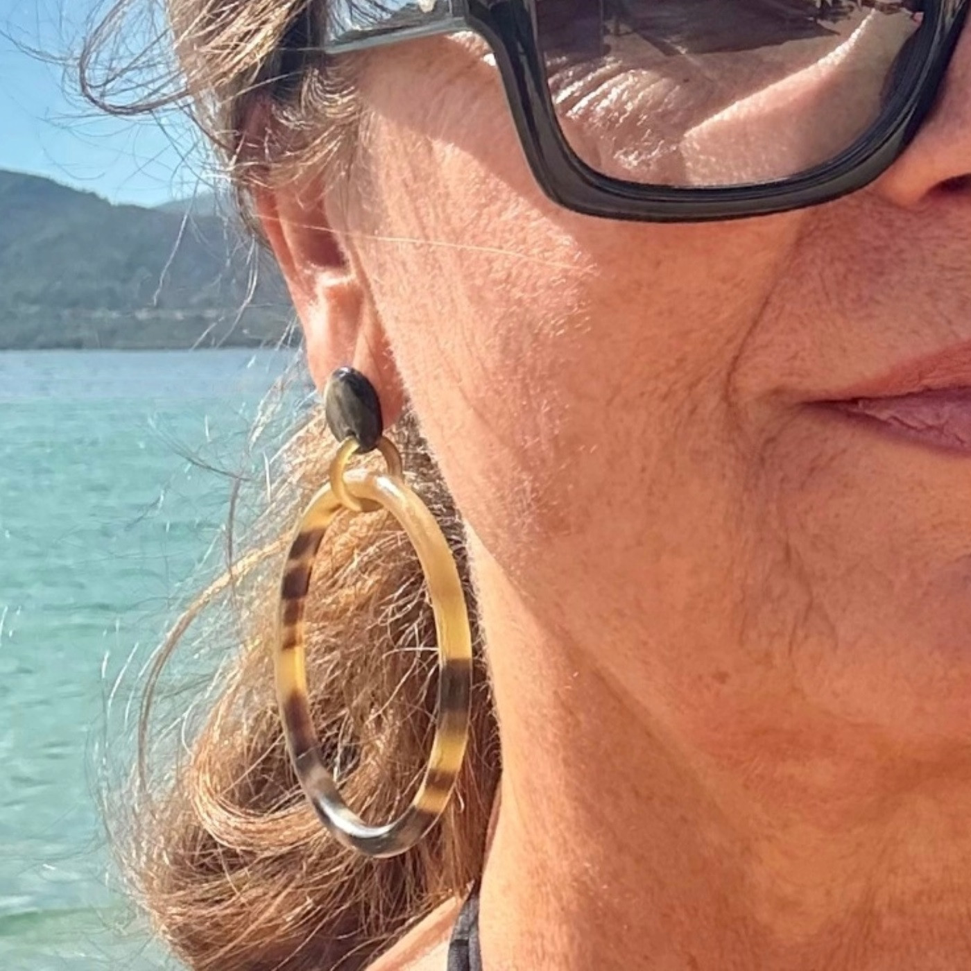 Door het lichte gewicht zijn deze buffelhoorn creolen, heerlijk draagbaar. Deze collectie is er in allerlei tintjes.