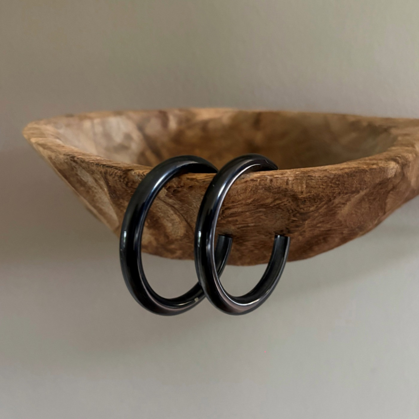 Mooie, stijlvolle, handgemaakte creolen van buffelhoorn. Superstoer!