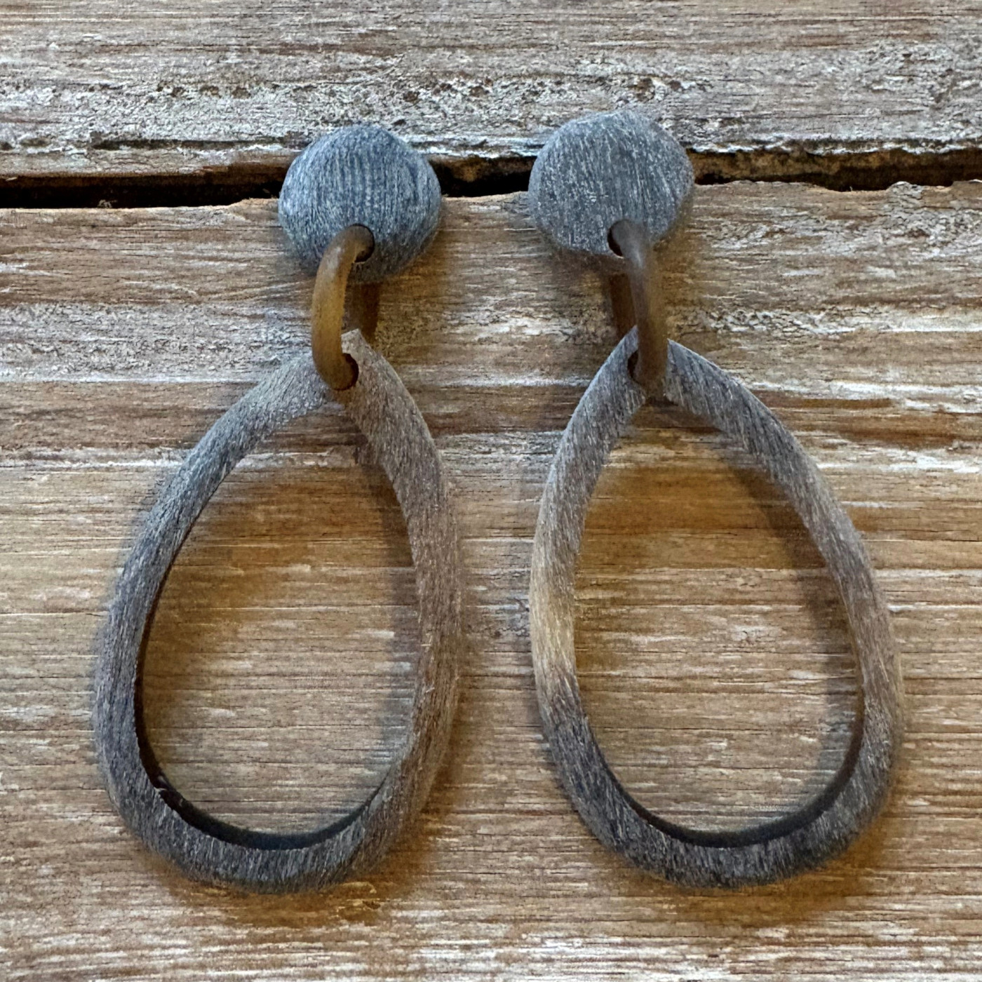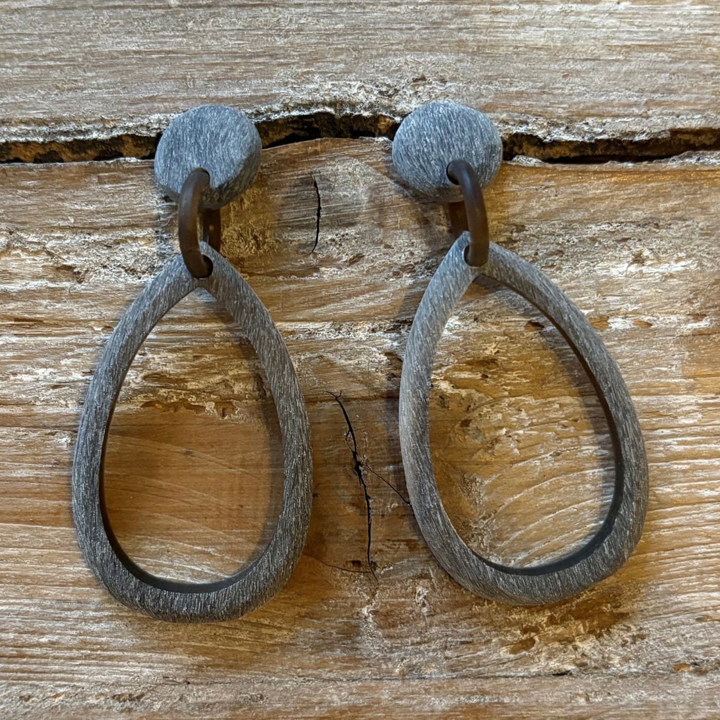 Handgemaakte ovaalvormige oorbellen met een geborstelde finish.