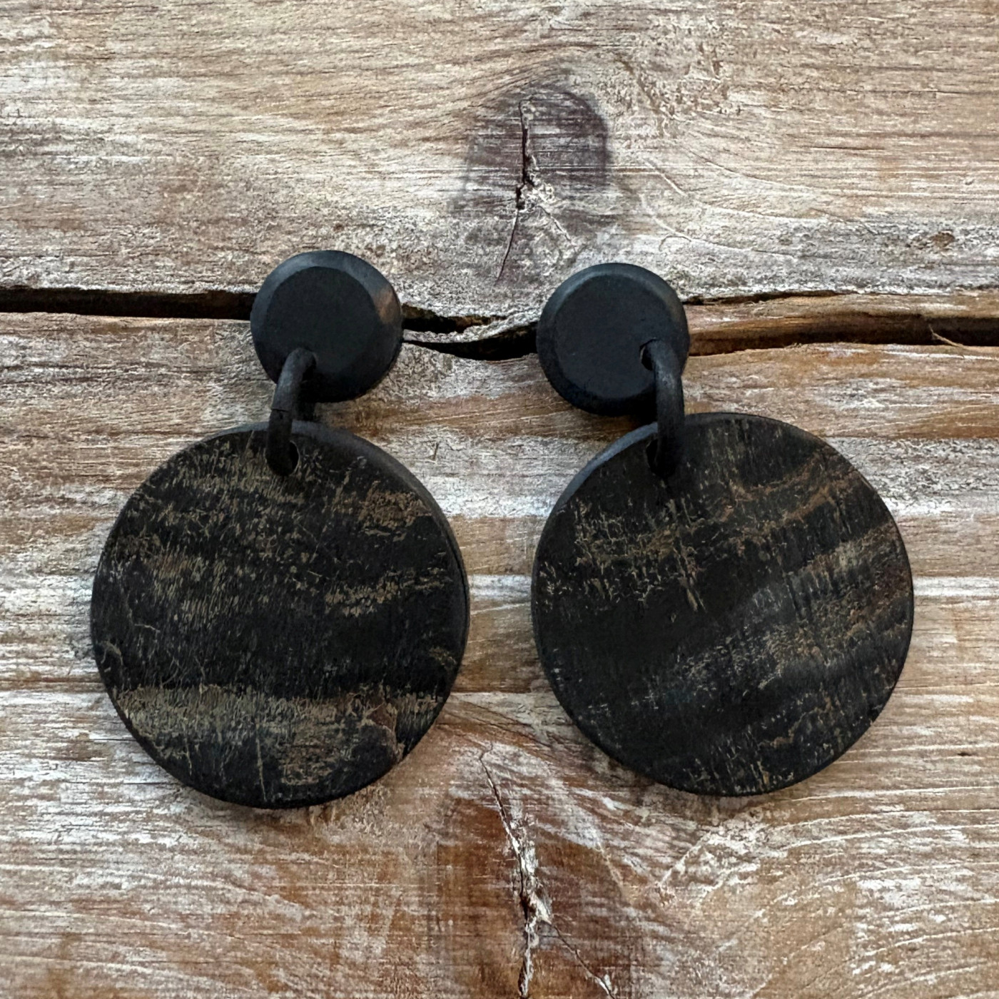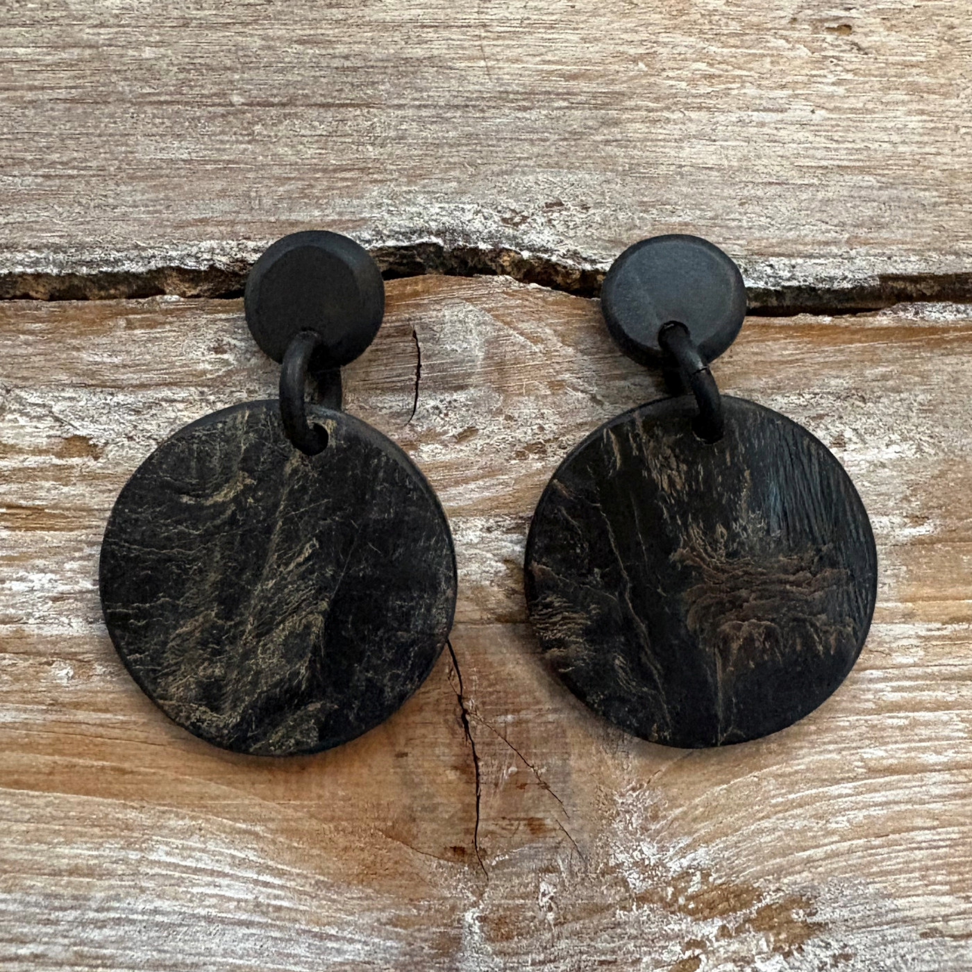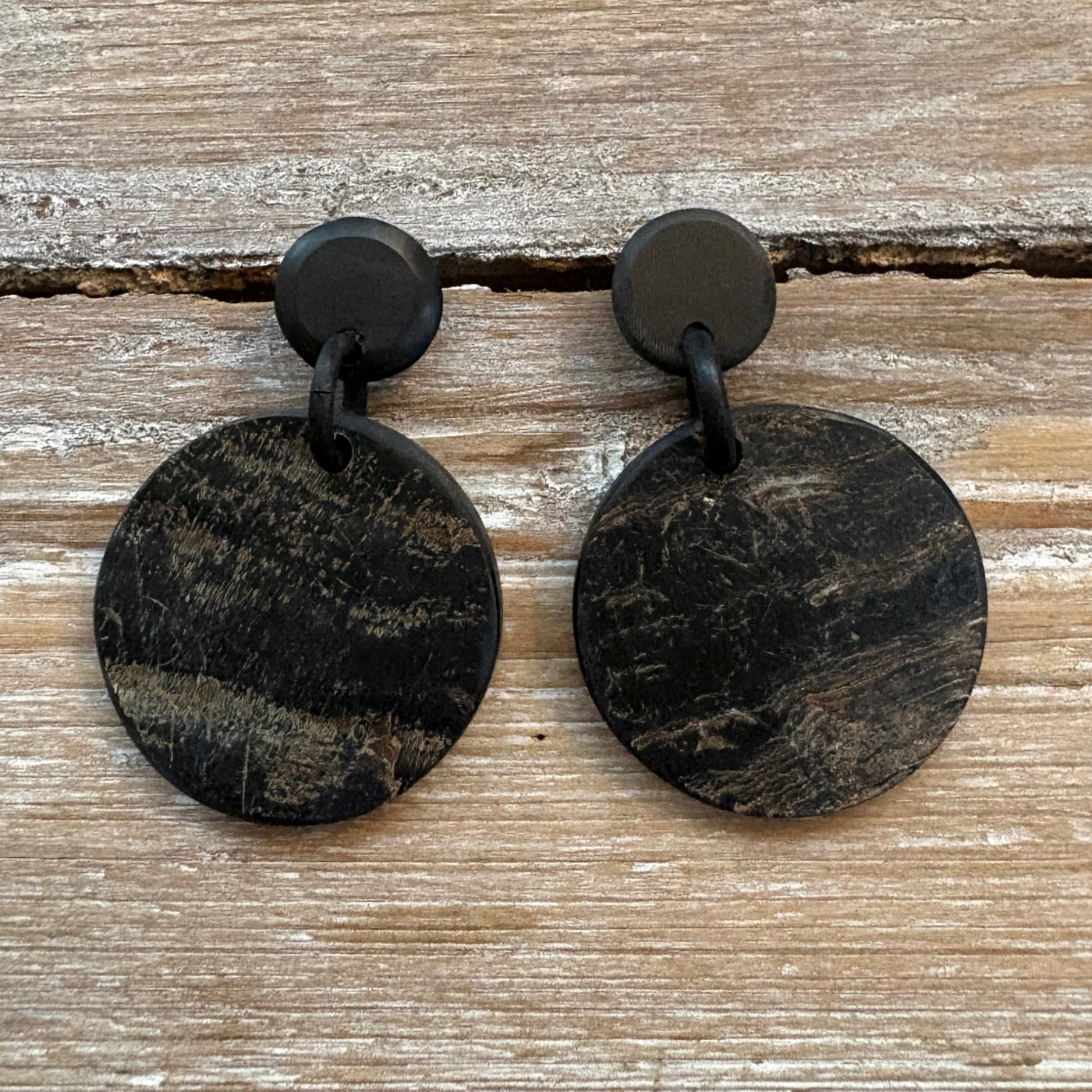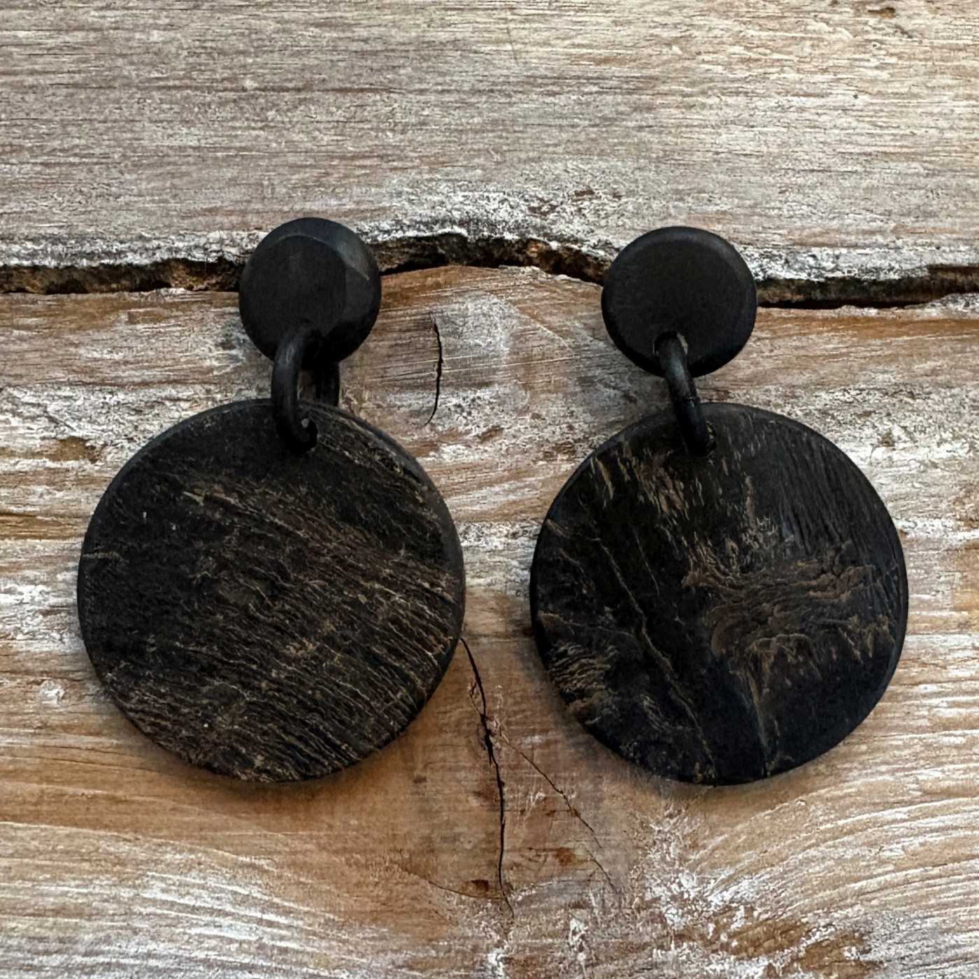 Wát een stoere oorbellen! Zwart mat, gecombineerd met ruw buffelhoorn.