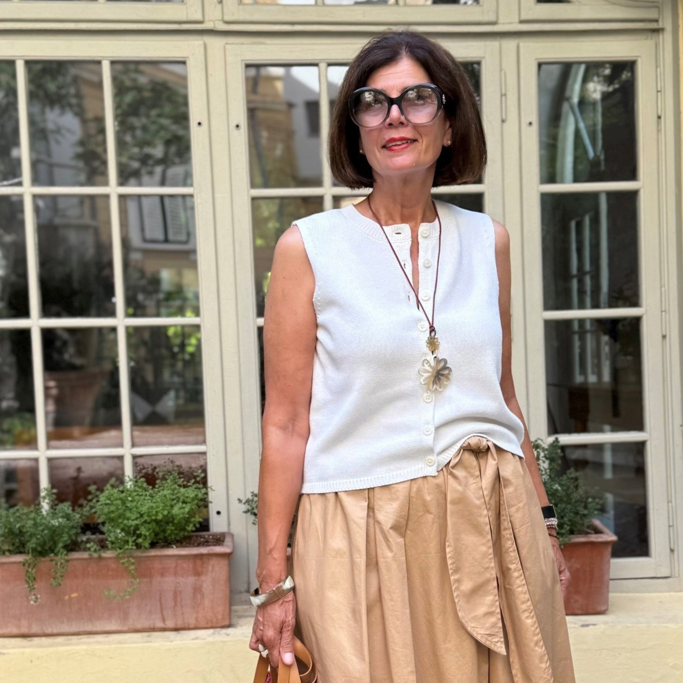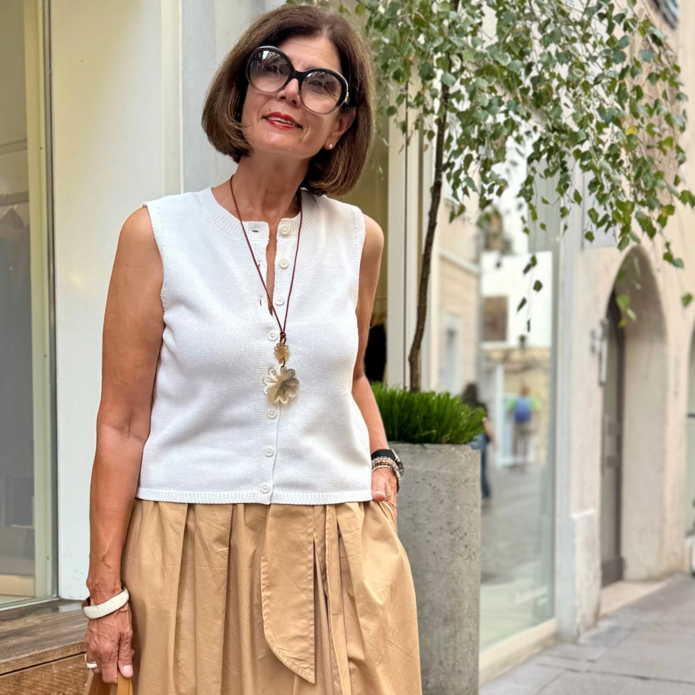 Door middel van een houten kraal, kan je de lengte van het koord bepalen. Zowel leuk lang, als kort te dragen.