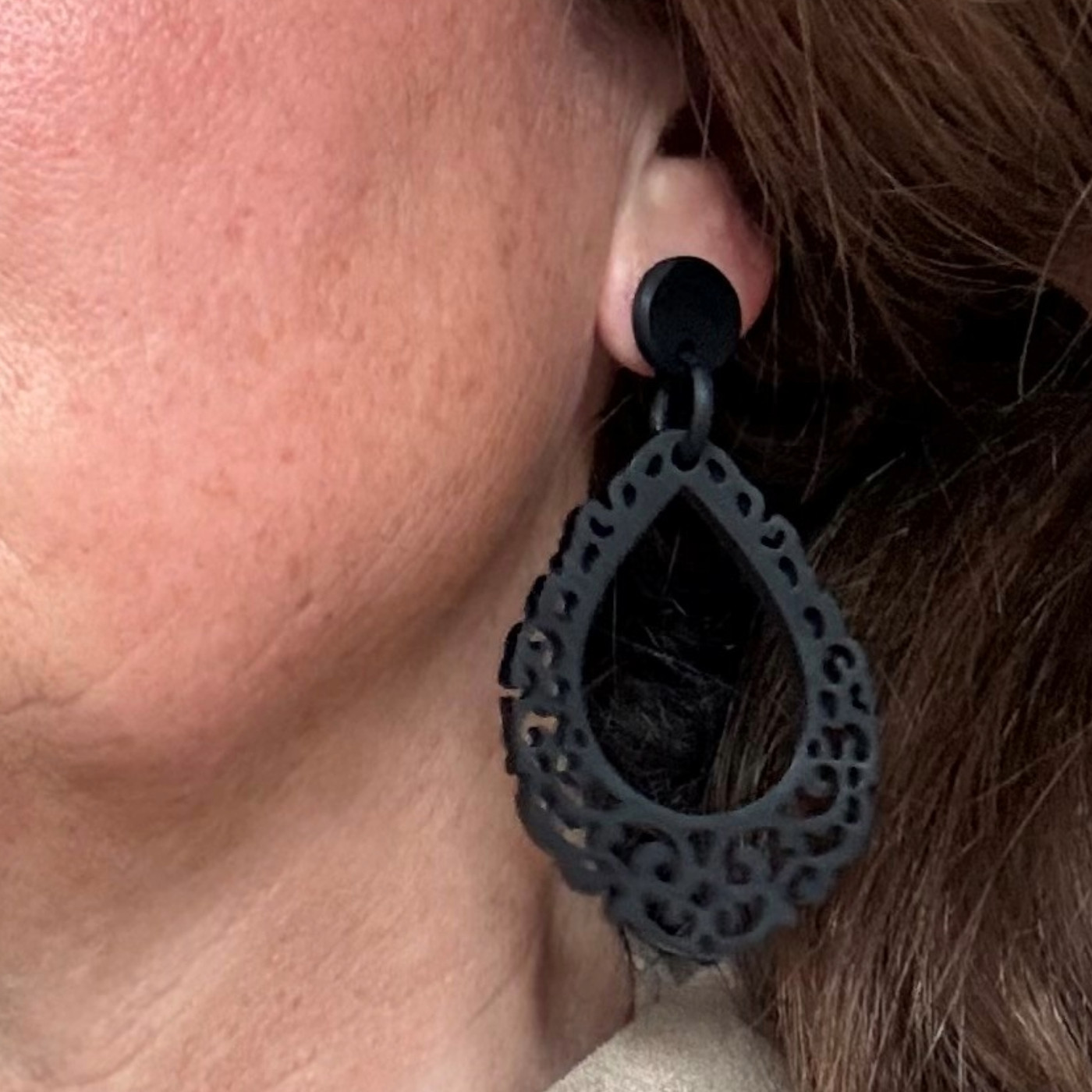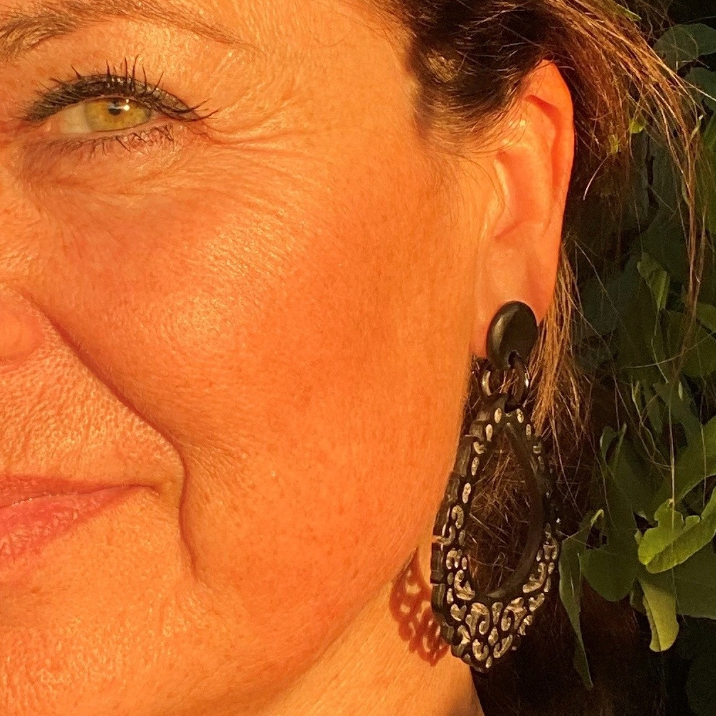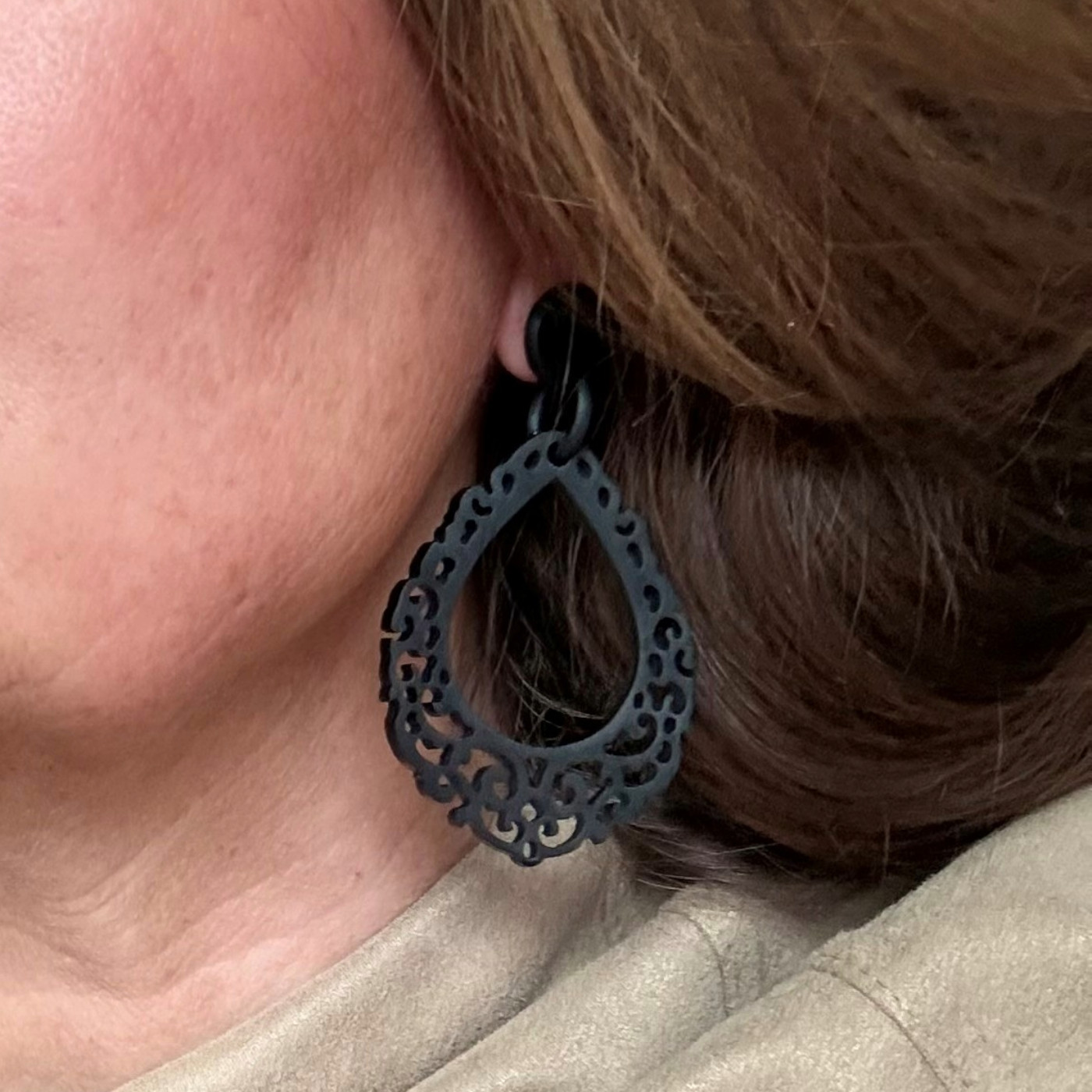 Super sierlijk bewerkte en stijlvolle, handgemaakte zwarte buffelhoorn oorbel.