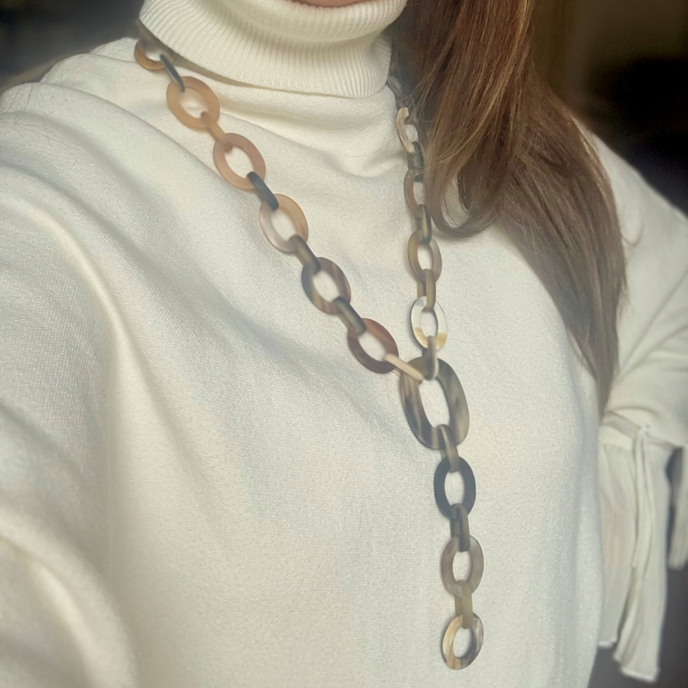 Stijvol collier in unieke bruintonen...handgemaakt, buffelhoorn met een matte finish.