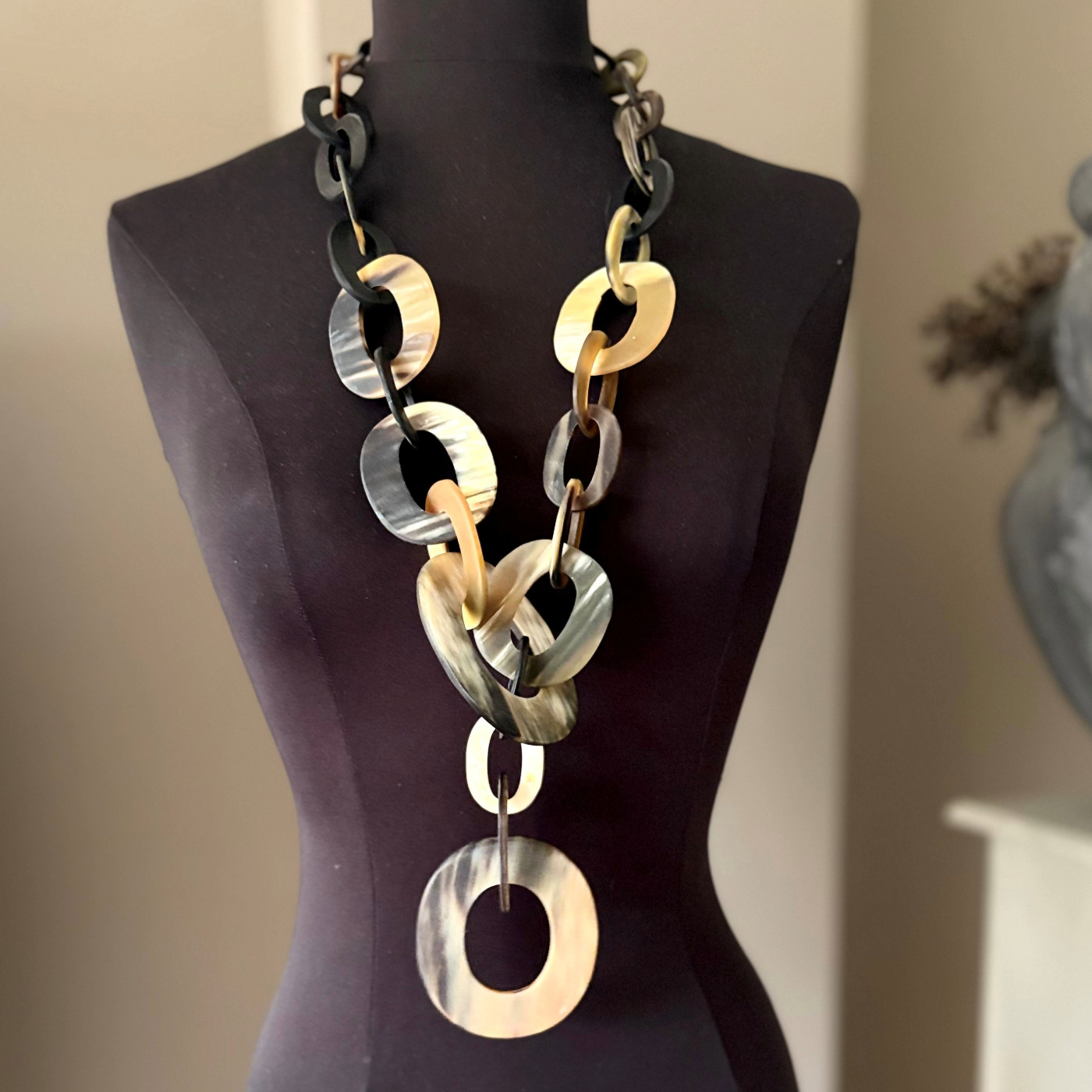 Stoer, stijlvol en krachtig handgemaakt buffelhoorn collier in een matte finish.