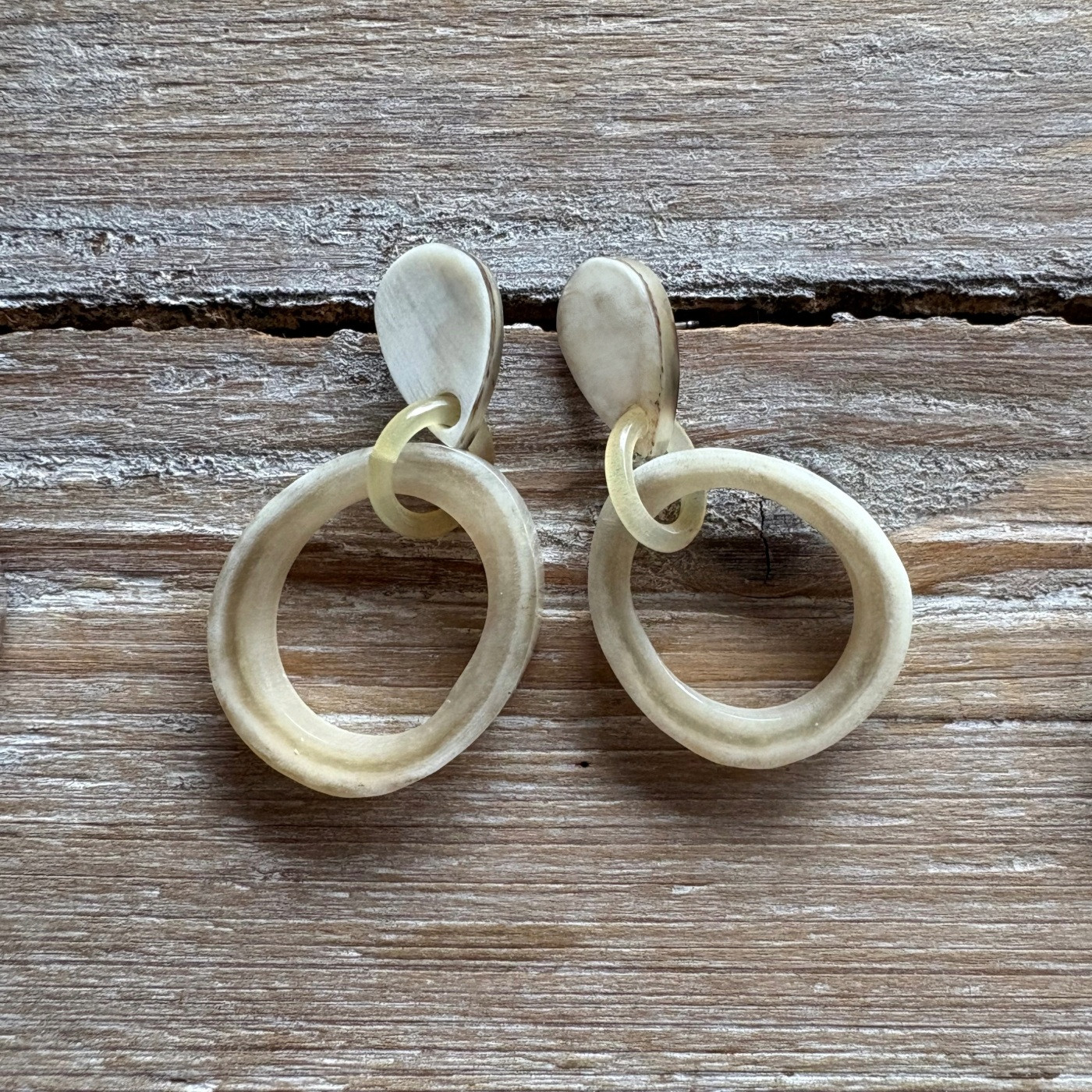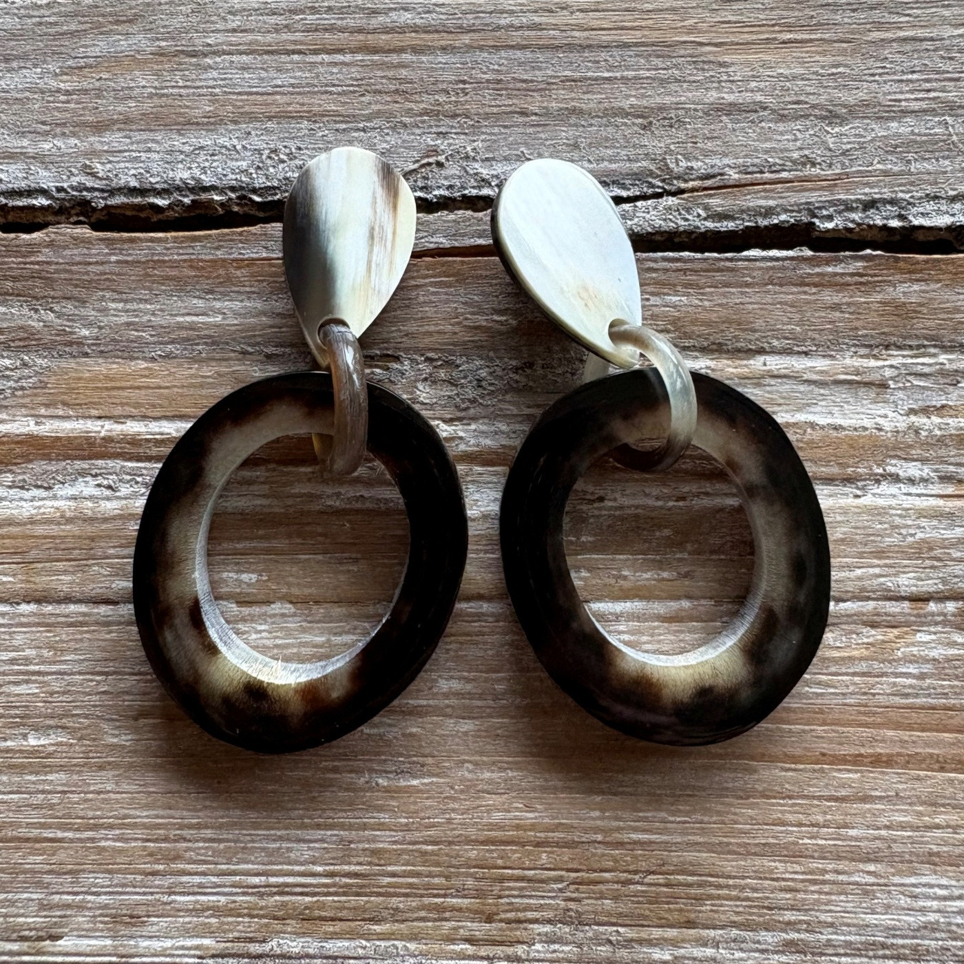 Mooie, stijlvolle, handgemaakte oorbellen van buffelhoorn met een druppelvormige stud.