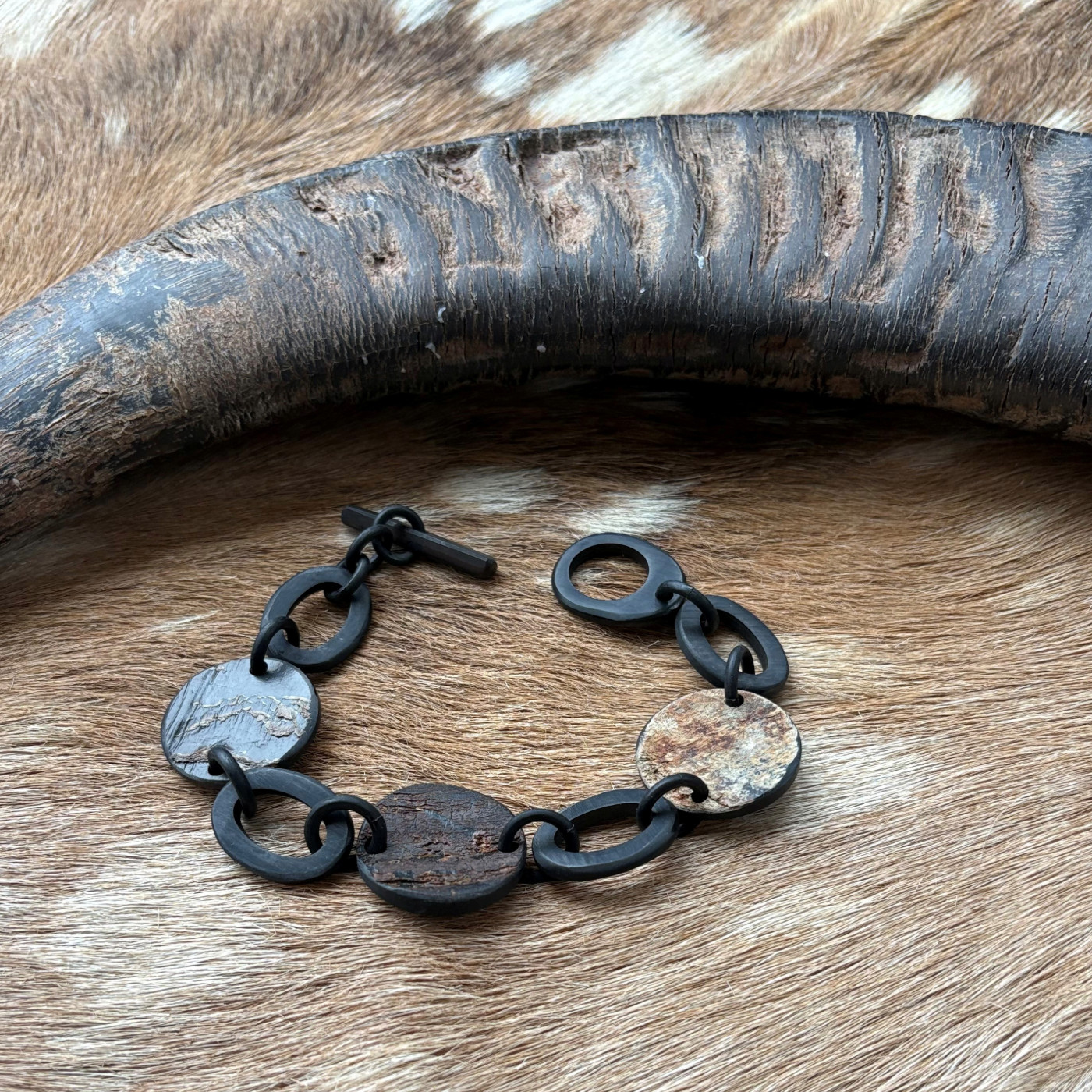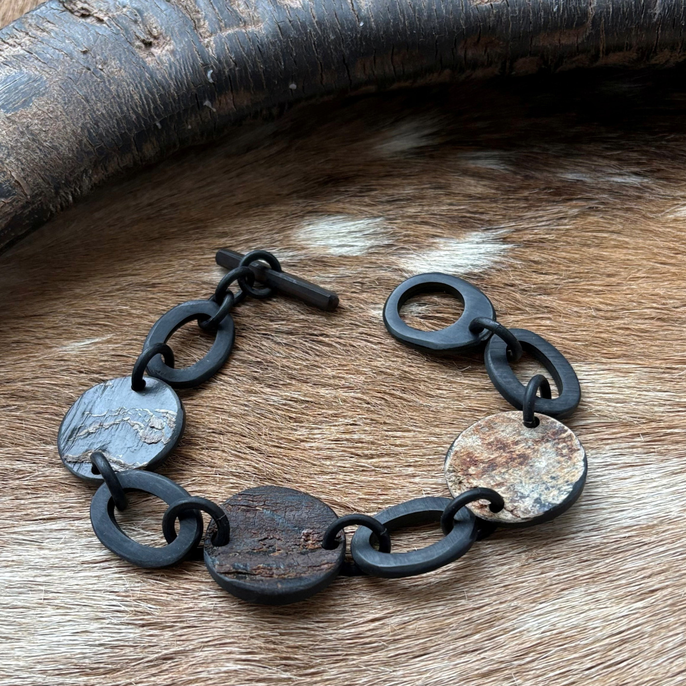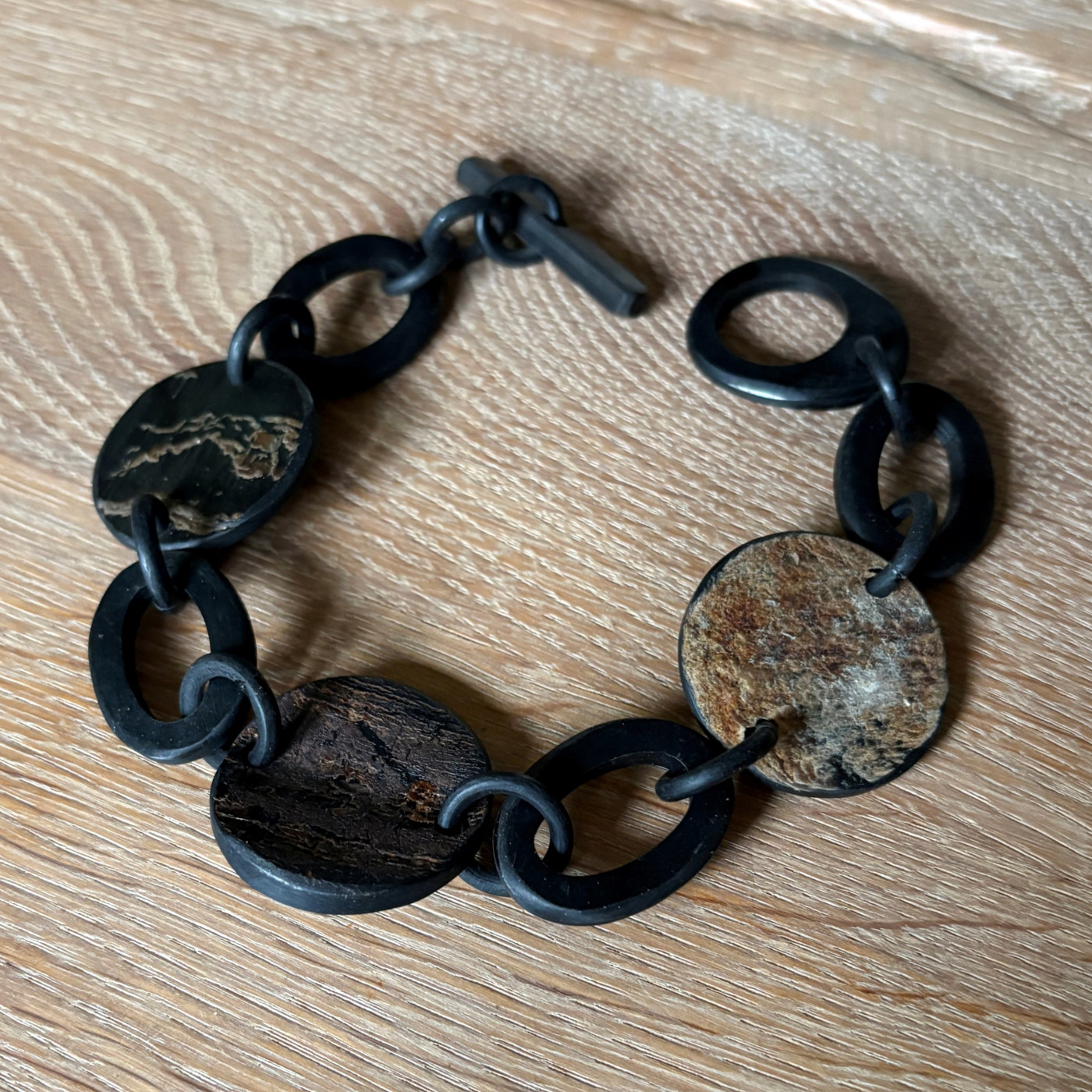 Zwart matte ovale schakelarmband gecombineerd met massieve ruwe schakels.